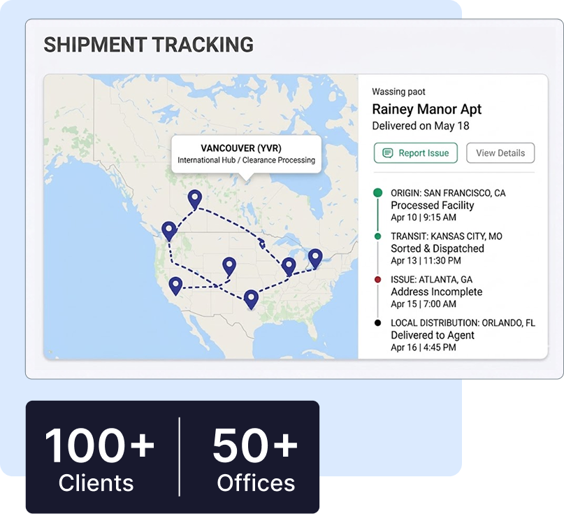 Manage shipments, track progress, and access everything you need clearly organized in one intuitive interface.